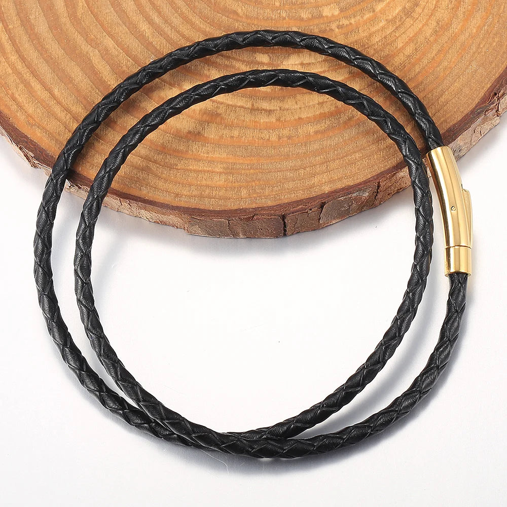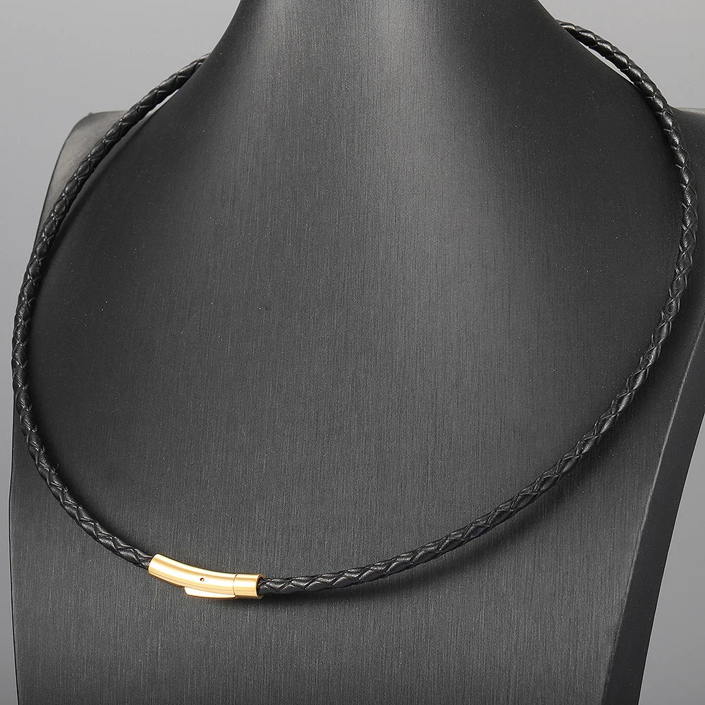 4mm/6mm Man-made Leather Necklace Choker For Men Boys Red Black Brown Braided Rope Chain Male Push Clasp Jewelry Gifts UN149