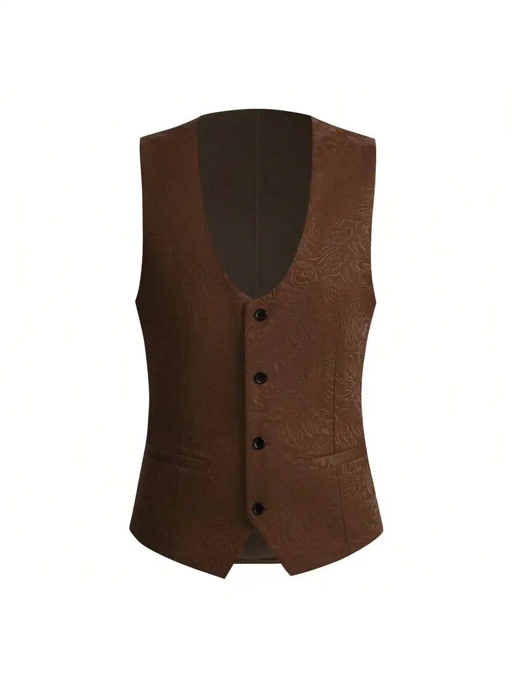 Mens 3 Piece Floral Tuxedo, Jacquard Slim Suit Set, Paisley Blazer Vest and Pants for Prom Wedding