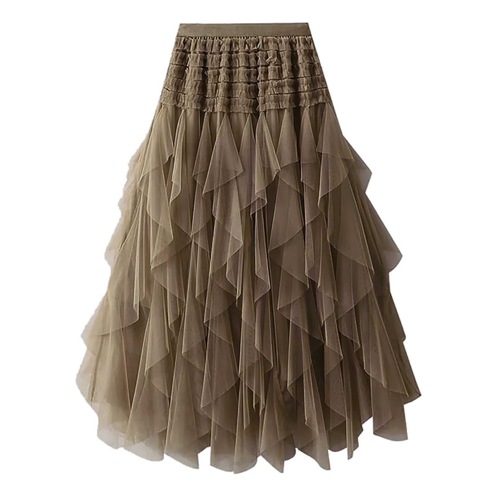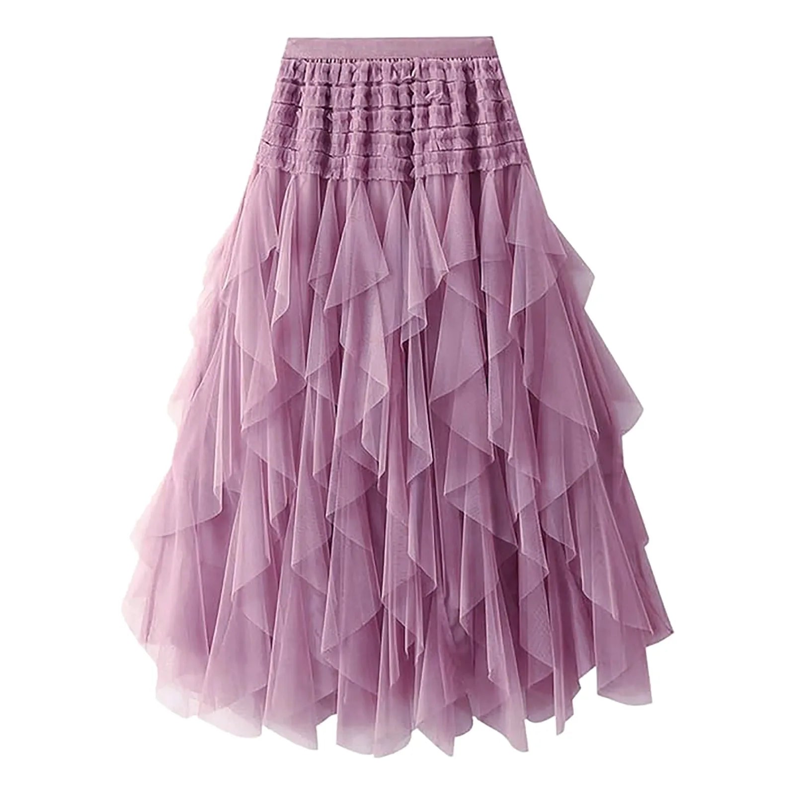 Tulle Skirts For Women High Elastic Waist Multi Layered Tulle Mesh Patchwork Long Fairy Skirt Plain Big Swing A Line Skirts
