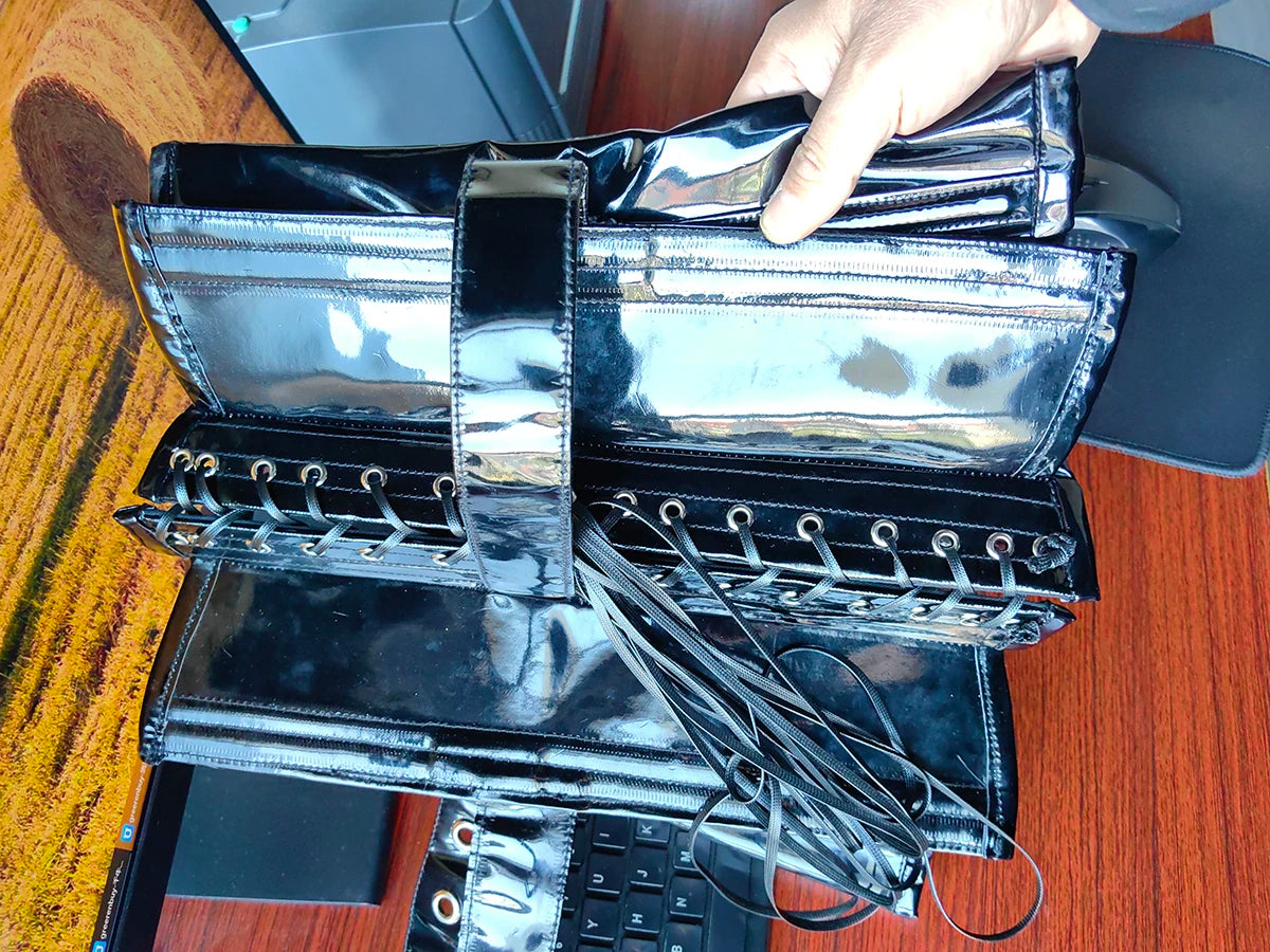 Women Heavy Corset Hand Made Bustier With Locks AndKeys Lace Up Steel Boned Shaping Tops BlacK Patent Leather Gothic Bodices