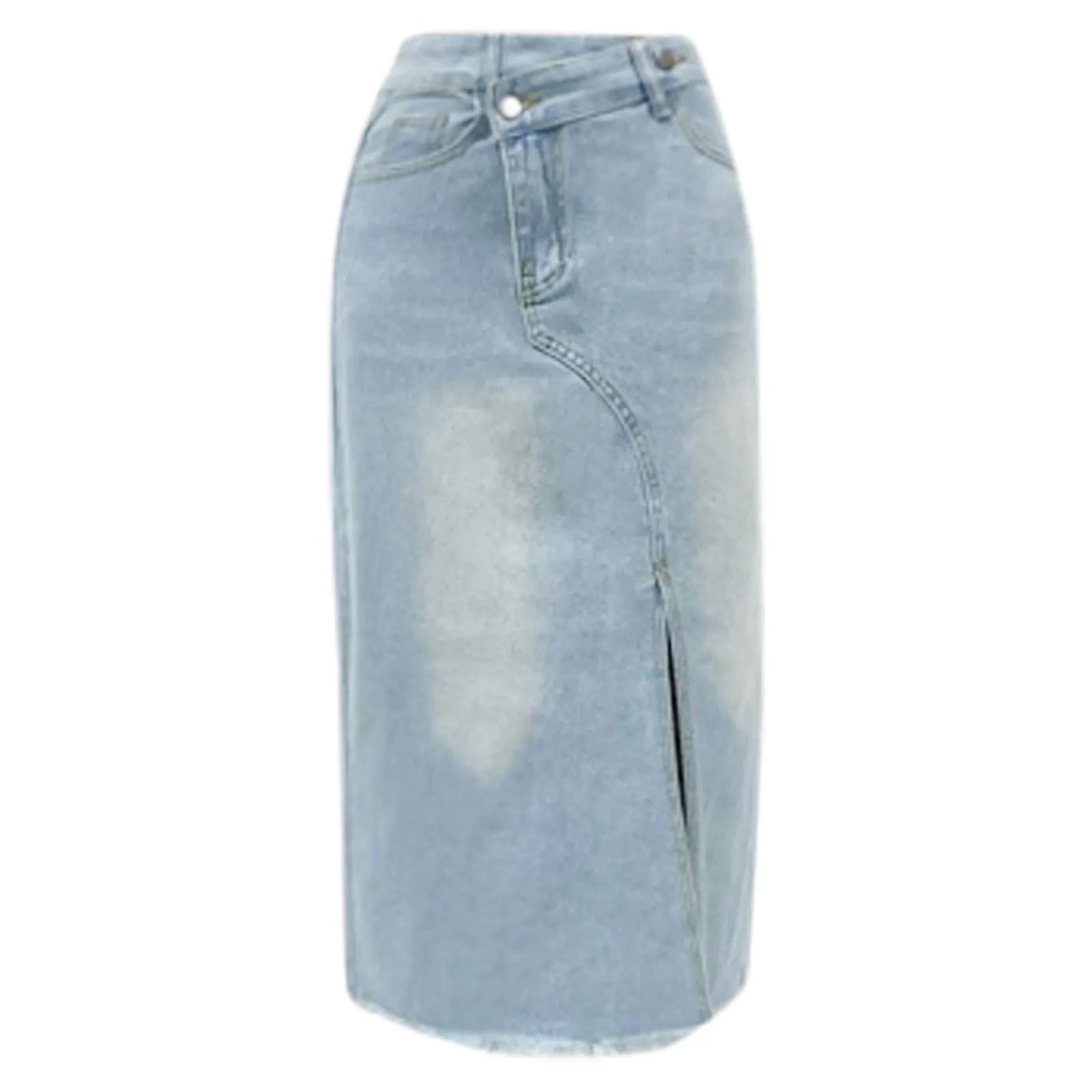 Women Mid Length Jean Skirt With Pockets High Waist Front Split Bodycon Striaght Skirts Women's Washed Light Color Jean Skirt