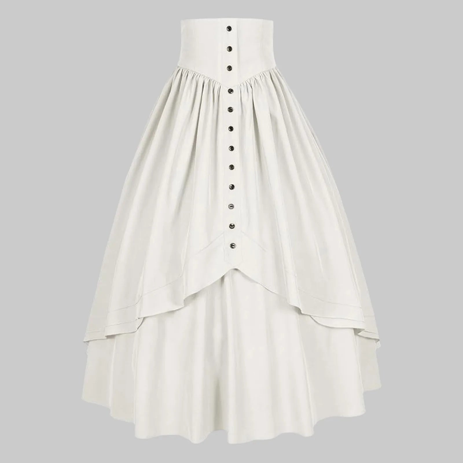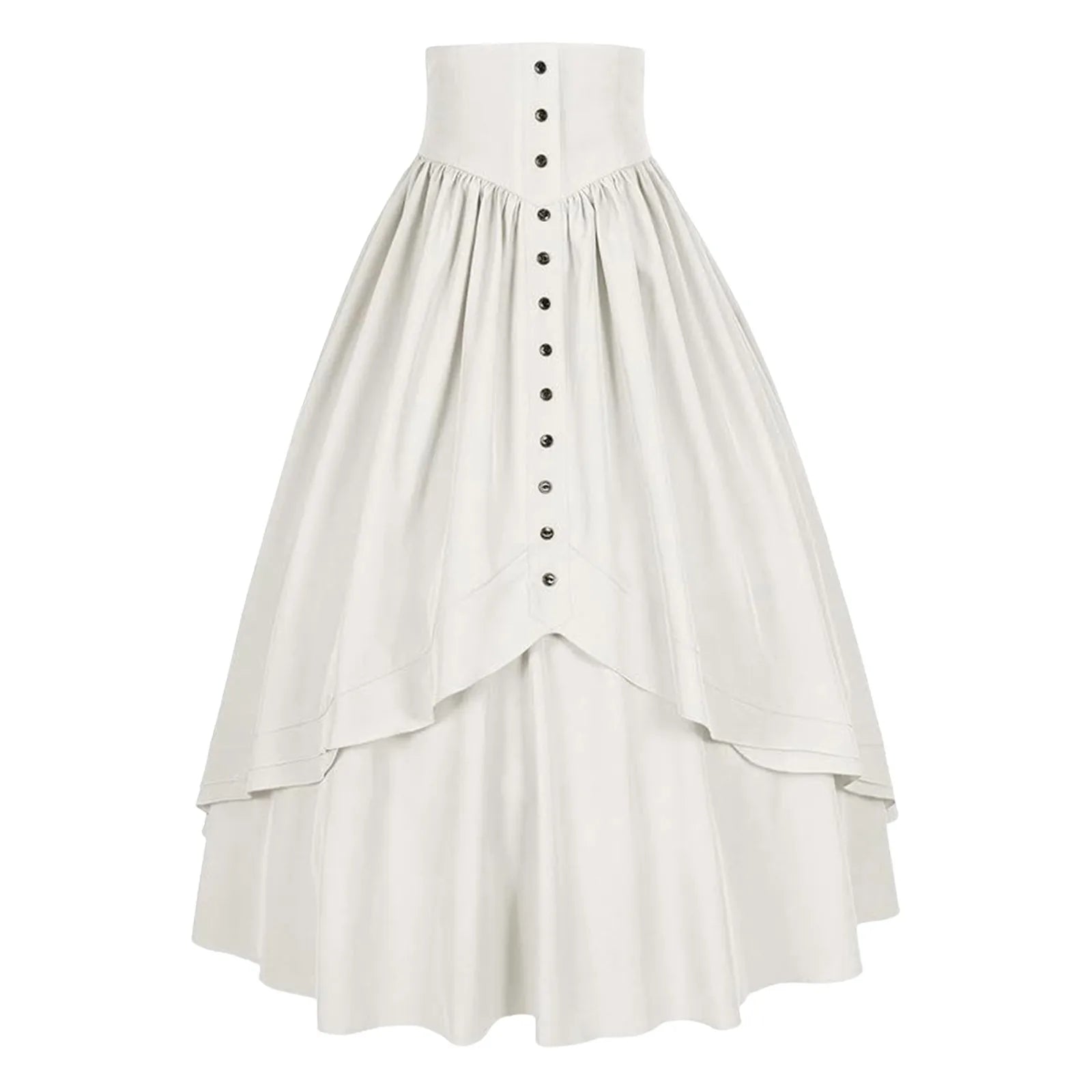 Women Vintage Maxi Skirt Medieval Retro High Waist A Line Victorian Long Skirt Steampunk Gothic Ruffled Hem Pleated Party Skirts